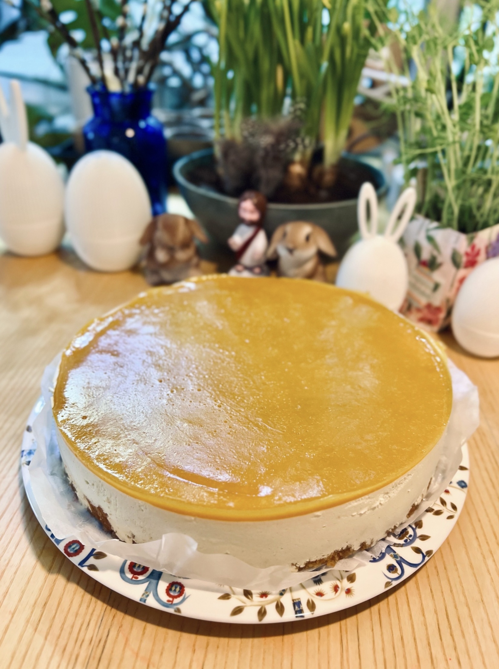 Omaan pöytääni rakensin kuitenkin omat perinteeni. Parsarisotto on vakiinnuttanut paikkansa pääsiäisruokana, ja tänäkin vuonna se onnistui lohdullisen hyvin. Lisäksi tein kormaa kasvispyöryköillä, jossa kastiketta haudutin hartaasti kaksi tuntia, ja siitä riitti lopulta myös miehen karitsan seuraksi. Jälkiruokapuolella panostin kunnolla: sitruunakakku, vegaaninen mangojuustokakku ja vegaaninen sitruunarahka. Viimeksi mainittu jäi muiden osalta vähän sivuun, mutta sainpa ainakin nauttia siitä itse rauhassa.