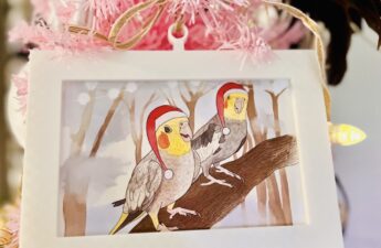 Viime jouluna piirsin ProCreatella joulukortin meidän neitokakadupariskunnasta Neidistä ja Noksusta. Halusin tallentaa korttiin jotain meille aidosti merkityksellistä; tutut hahmot, jotka ovat osa arkeamme ja perhettämme. Kun luomus alkoi valmistua, istuimme Lullan kanssa vierekkäin ja nauroimme hekotellen kuvalle. Tonttulakit päässä olevat kakadut olivat niin tunnistettavia, että Lullakin heti tiesi, keitä kuvassa oli. Jälkikäteen ajateltuna joulukortista tuli niin onnistunut ja rakas, etten…