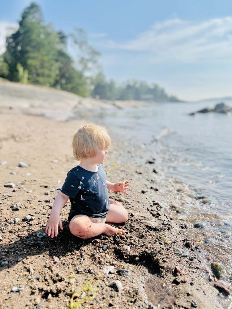 Heti kun rantauduimme saarelle, Lulla halusi saman tien ”uimaan” ja kylmässä vedessä hampaat kalisten totesi vain, että tämä on virkistävää. Tällä kertaa vietimmekin koko ajan vain hiekkarannalla polskutellen, löhöillen ja leikkien leikkipuistoissa. Lopuksi kävimme Pihlajasaaren ravintolassa syömässä. Minä tilasin itselleni sienirisottoa. Ukko ennätti simahtaa odotellessamme ruokia, mutta heti kun heräsi, alkoi lappaamaan ruokaa suuhunsa. Muutenkin koko reissun ajan Ukko halusi syödä lähes jatkuvasti jotakin. Hän syö kuin hevonen. Kasvaa varmaan kaksi metriseksi tuolla menolla.